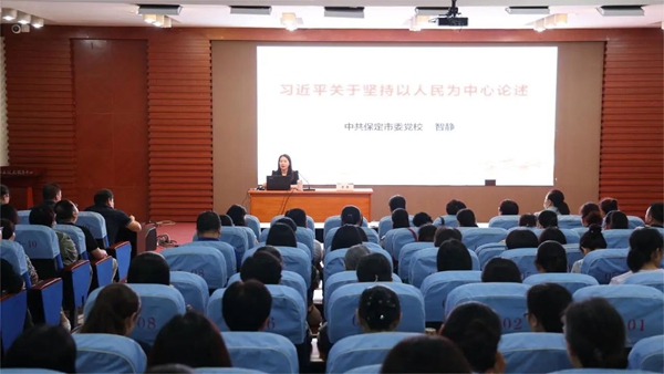8月28日上午,我校邀请中共保定市委党校法学教研室副主任、高级讲师智静为全体教师开展了以《习近平关于坚持以人民为中心论述》为主题的讲座。