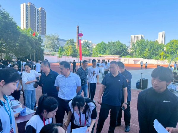 学校还贴心地为家长们设置了家长休息区。写满欢迎和激励语句的条幅和彩旗装点着校园,营造出热烈欢乐的氛围。