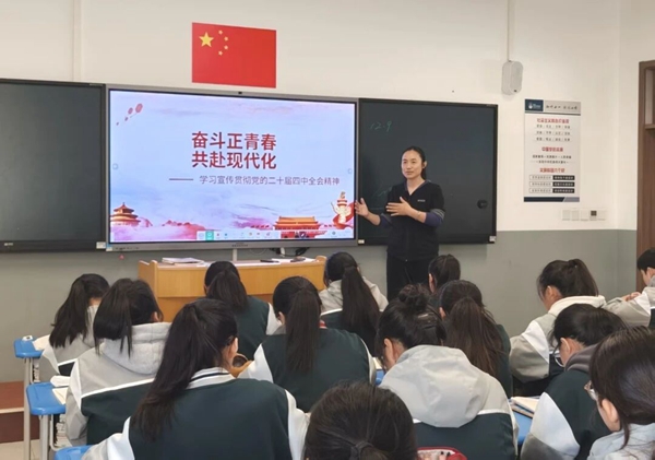在教务处和专业部的统筹安排下,全体思政课教师迅速行动,认真学习、整合相关材料,通过集体备课与磨课,将本次思政课精心设计为“理论精讲”“实景感悟”和“交流共鸣”三个环节。教师们围绕学习宣传贯彻党的二十届四中全会精神,结合保定发展实际,高质量完成了三项教学成果:一份融入地方实践、内容扎实的教案,一套图文并茂、制作精良的课件,以及一堂覆盖全体学生、富有感染力、入脑入心的思政课。