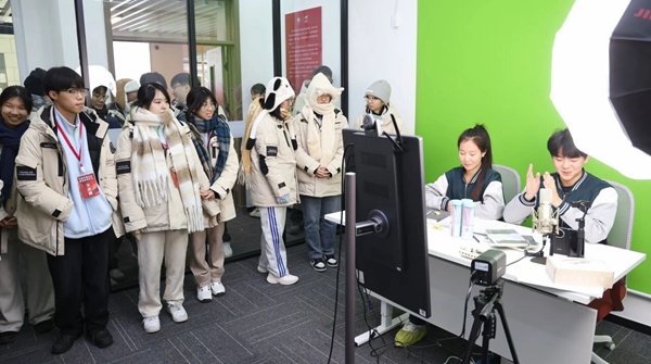 随后,交流团参观了我校机电、计算机、财经商贸和艺术专业实训基地。在工业机器人实训室,灵活运转的工业机器人精准完成电子元件的生产、识别、分拣与装配等任务,令师生们惊叹于职业教育在培养技术技能人才方面的扎实成效。在物联网工程实施实训室,交流团学生在我校学生指导下亲手体验搭建物联网系统、调试智能终端,切身感受物联网技术在现实生活中的应用。走进电商直播实训室和电商视频运营中心,交流团学生对正在进行的真实店铺运营、直播带货、文创产品开发等项目表现出浓厚兴趣,并尝试走进直播平台推介保定特色产品,体验专业实践的趣味性。最后来到化妆美甲实训室,这里成为欢乐的互动乐园。学校师生与香港青年围坐一起,开展美甲、化妆、编发等趣味互动。大家一边动手操作,一边亲切交流,从美甲图案设计到编发样式选择,欢声笑语不断。指尖的创意碰撞、发丝的巧妙编织,拉近了彼此距离,也让交流团师生感受到职业教育贴近生活、注重实践的独特魅力。